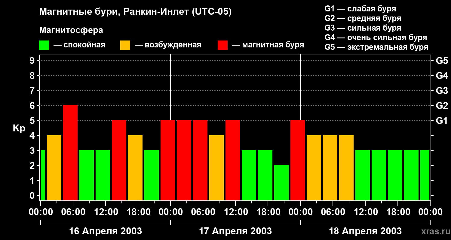 Магнитные бури в Ранкин-Инлете 18 апреля 2003 года
