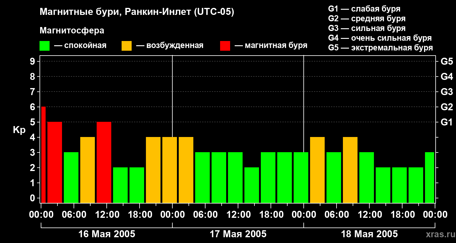 Магнитные бури в Ранкин-Инлете в мае 2005 года