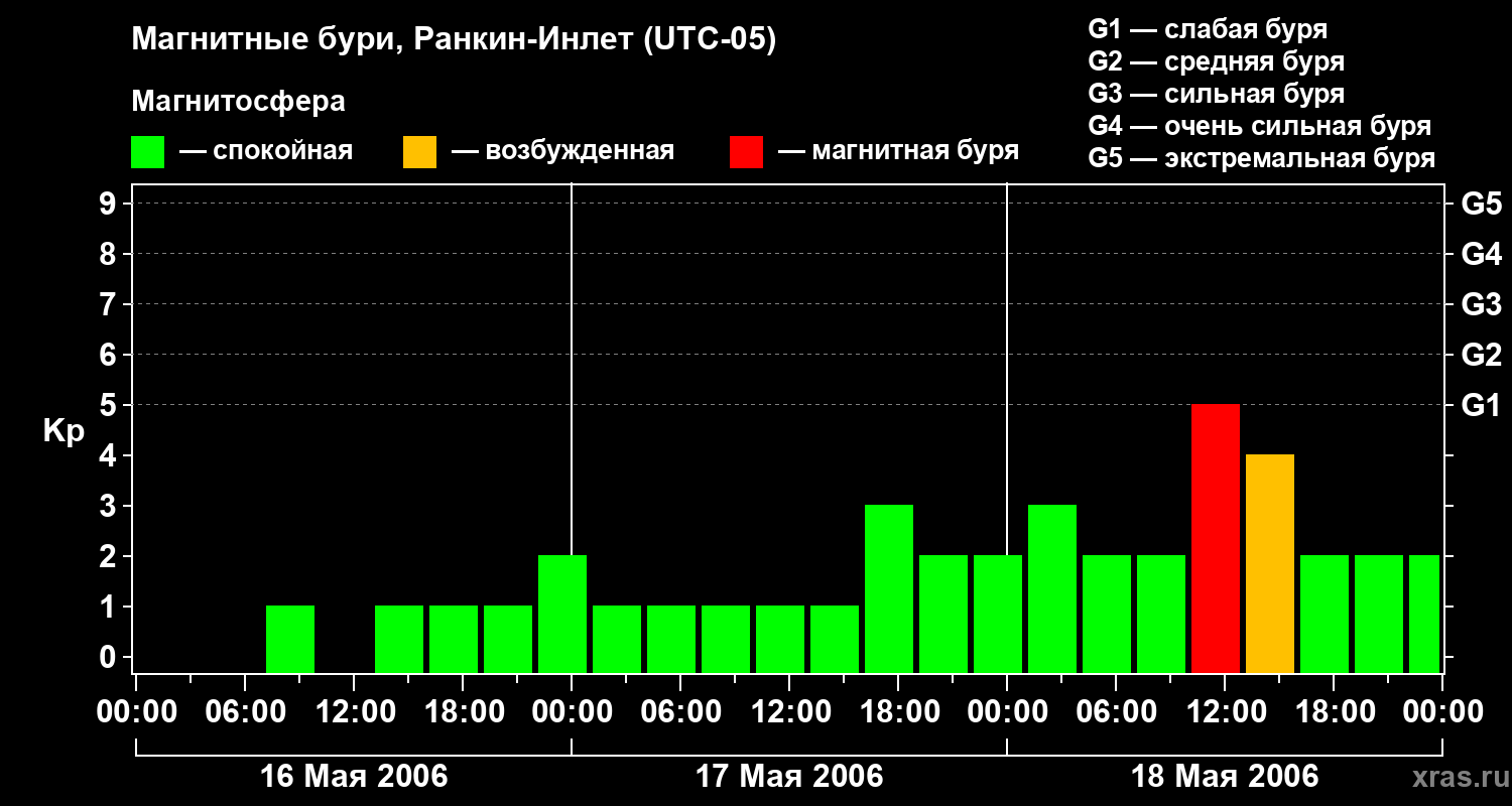 Магнитные бури в Ранкин-Инлете 18 мая 2006 года