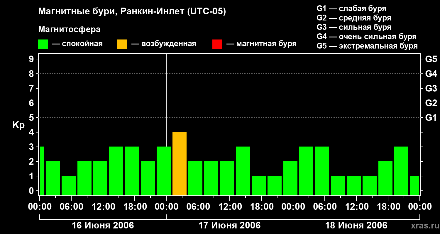 Магнитные бури в Ранкин-Инлете в июне 2006 года