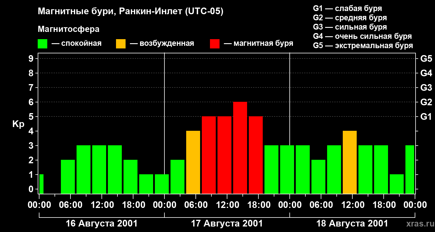 Магнитные бури в Ранкин-Инлете в августе 2001 года