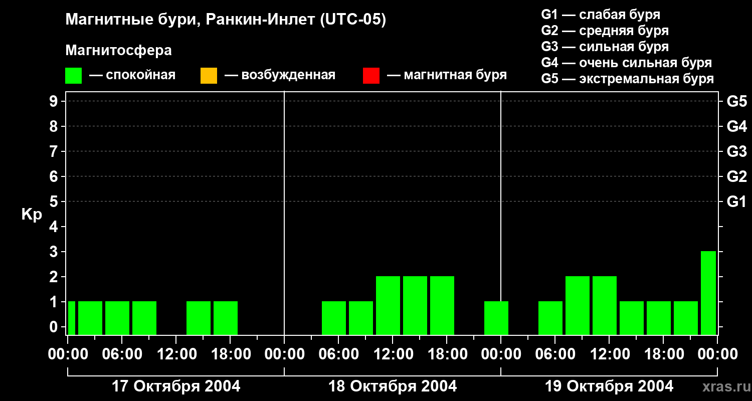 Магнитные бури в Ранкин-Инлете 19 октября 2004 года