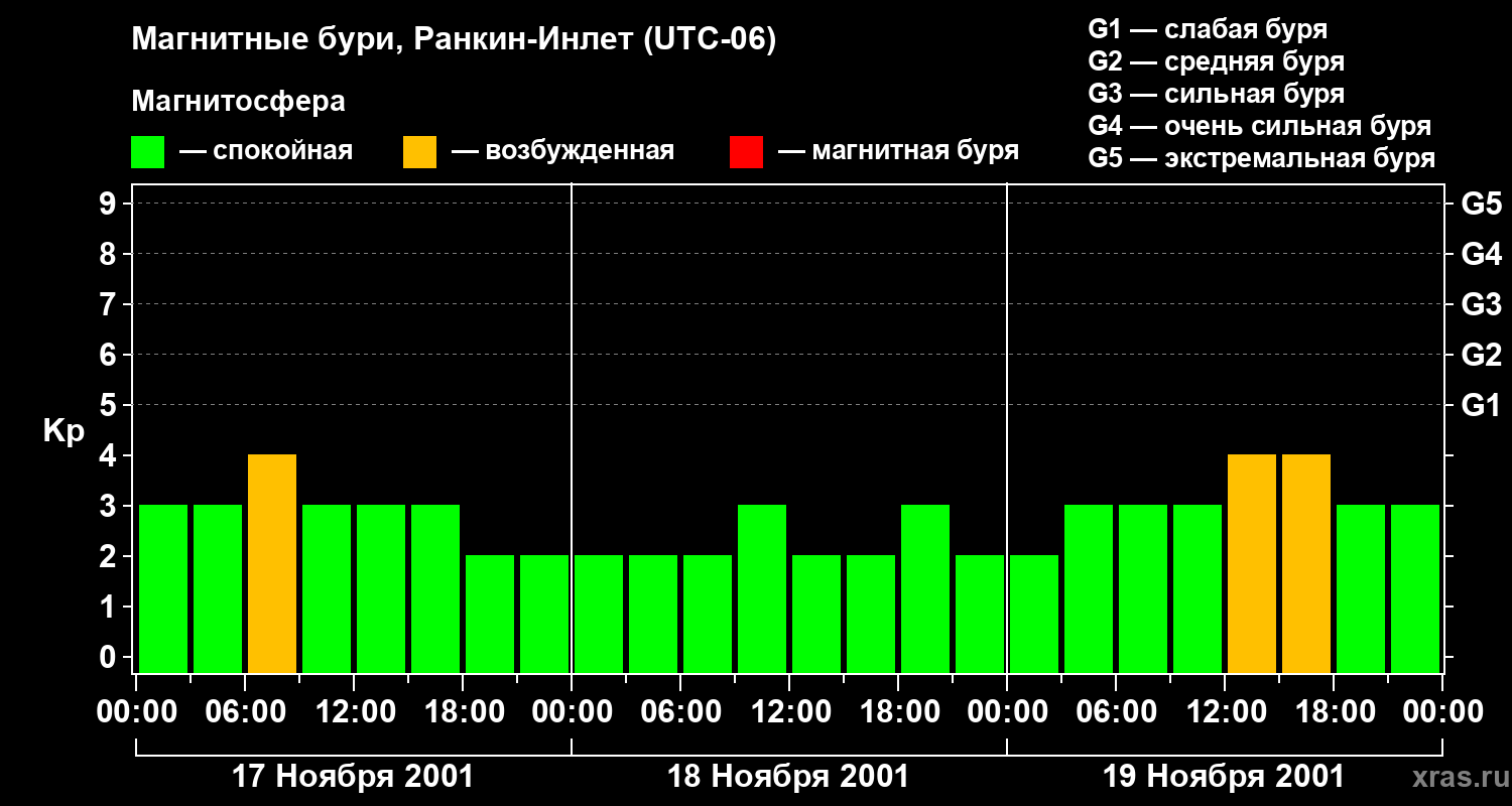 Магнитные бури в Ранкин-Инлете 19 ноября 2001 года