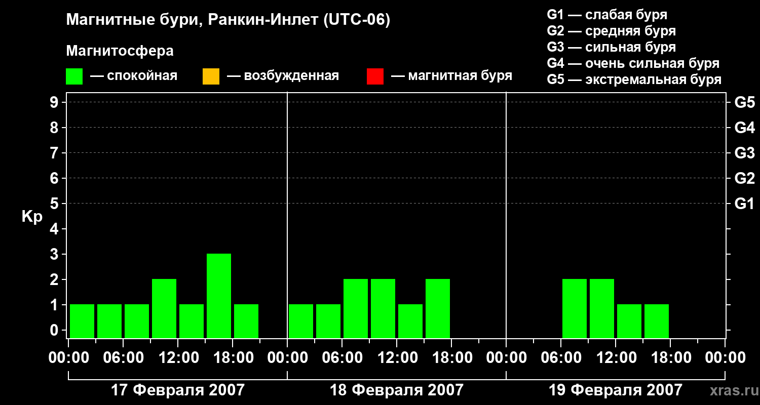 Магнитные бури в Ранкин-Инлете 19 февраля 2007 года