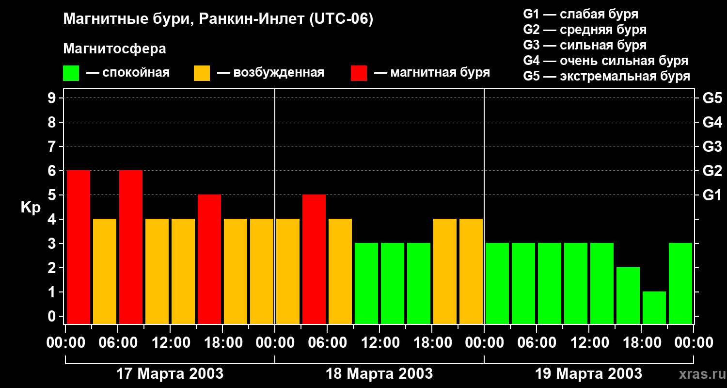 Магнитные бури в Ранкин-Инлете — 19 марта 2003 года