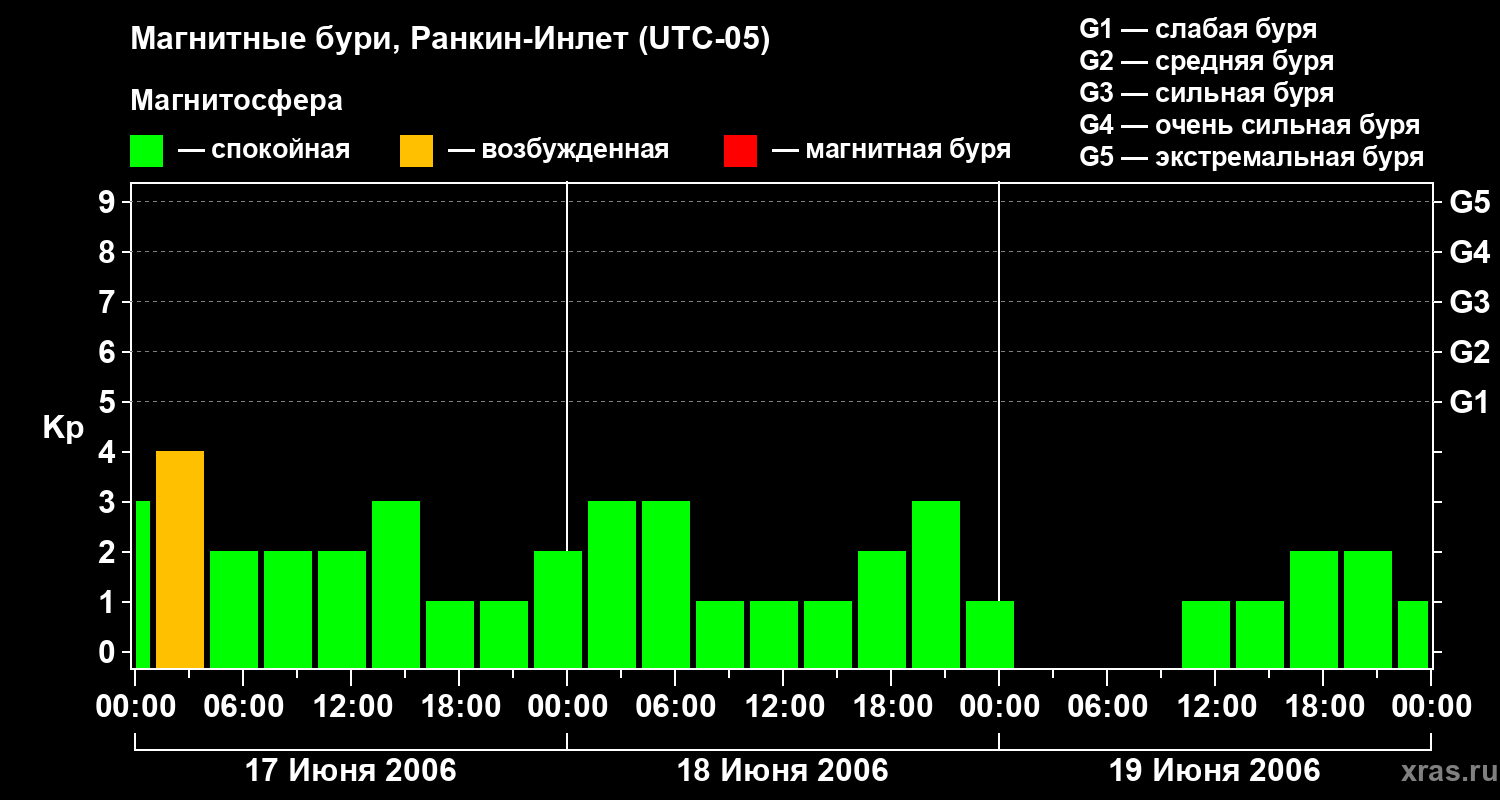 Магнитные бури в Ранкин-Инлете в июне 2006 года