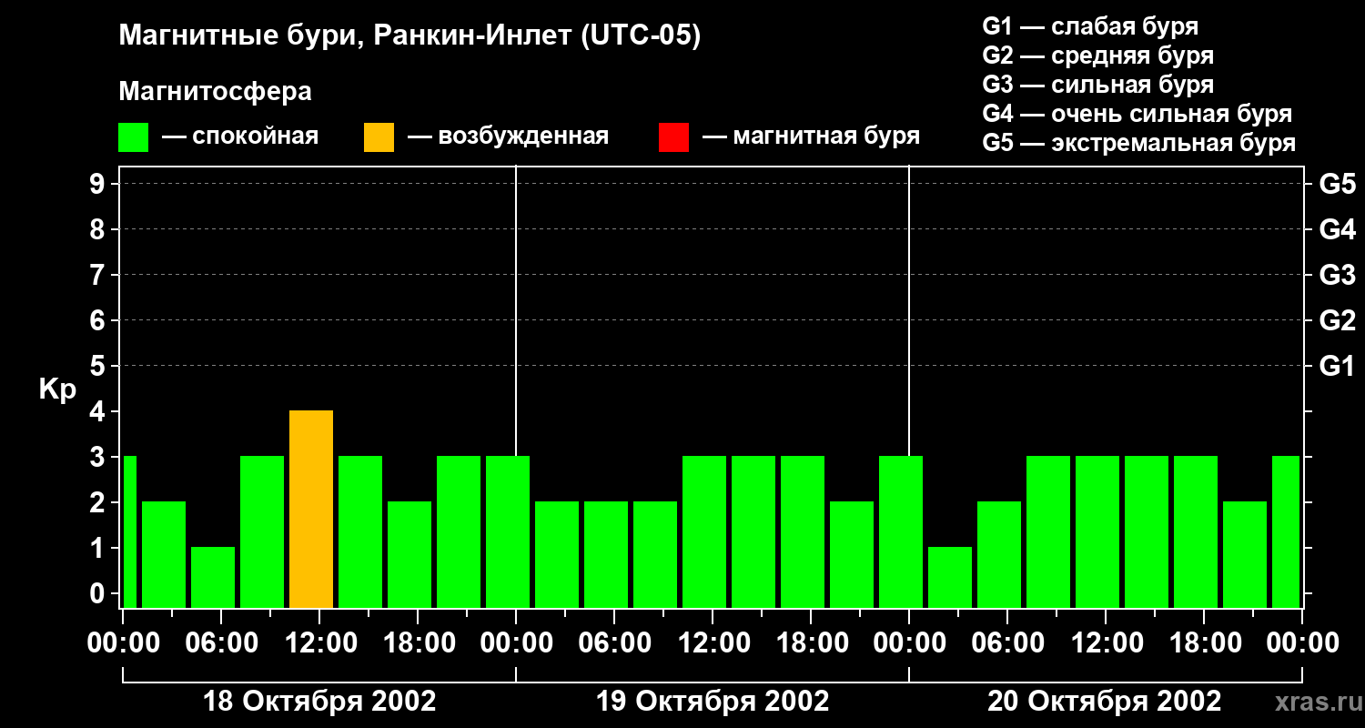 Магнитные бури в Ранкин-Инлете 20 октября 2002 года