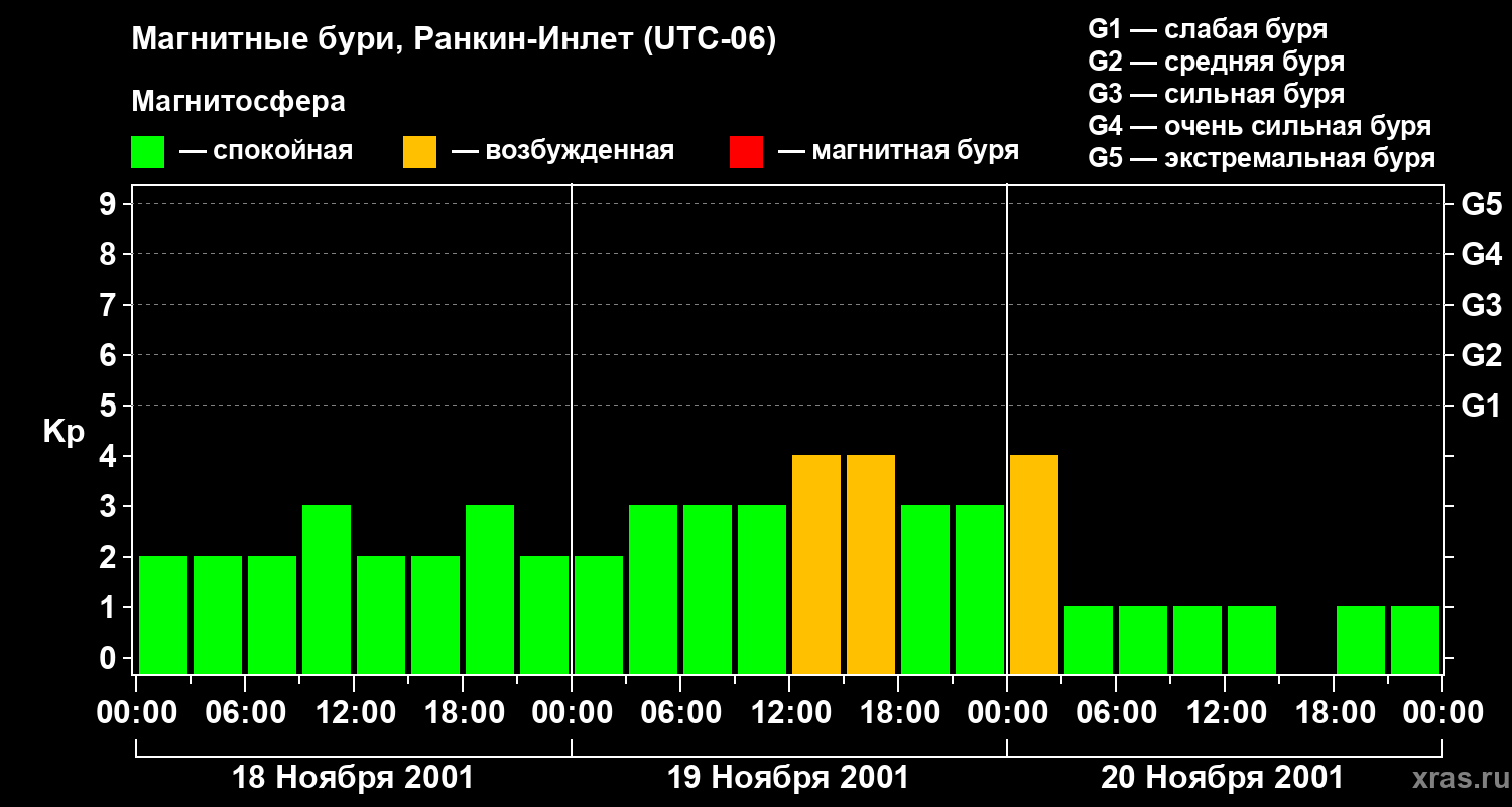 Магнитные бури в Ранкин-Инлете 20 ноября 2001 года