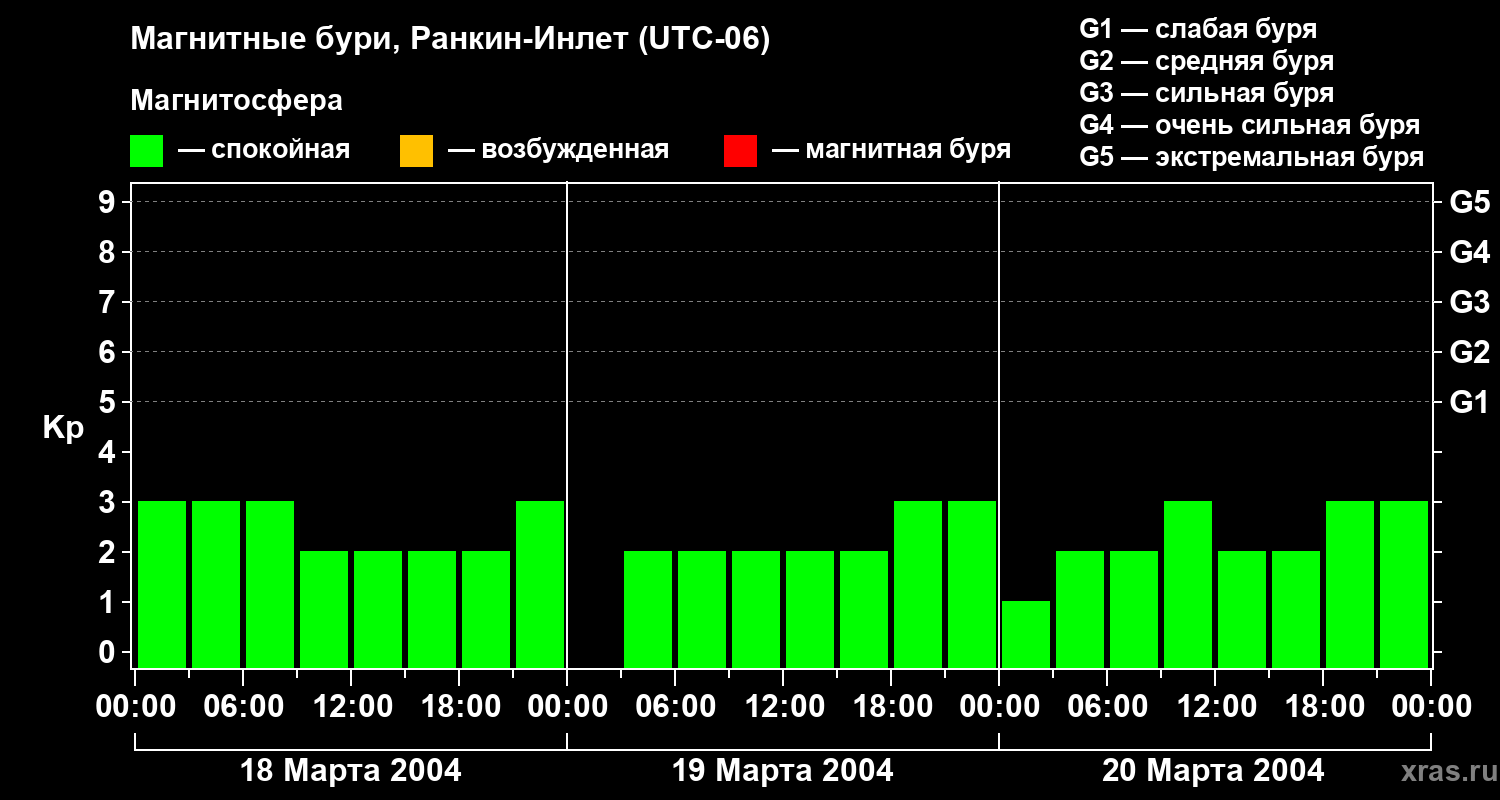 Магнитные бури в Ранкин-Инлете — 20 марта 2004 года