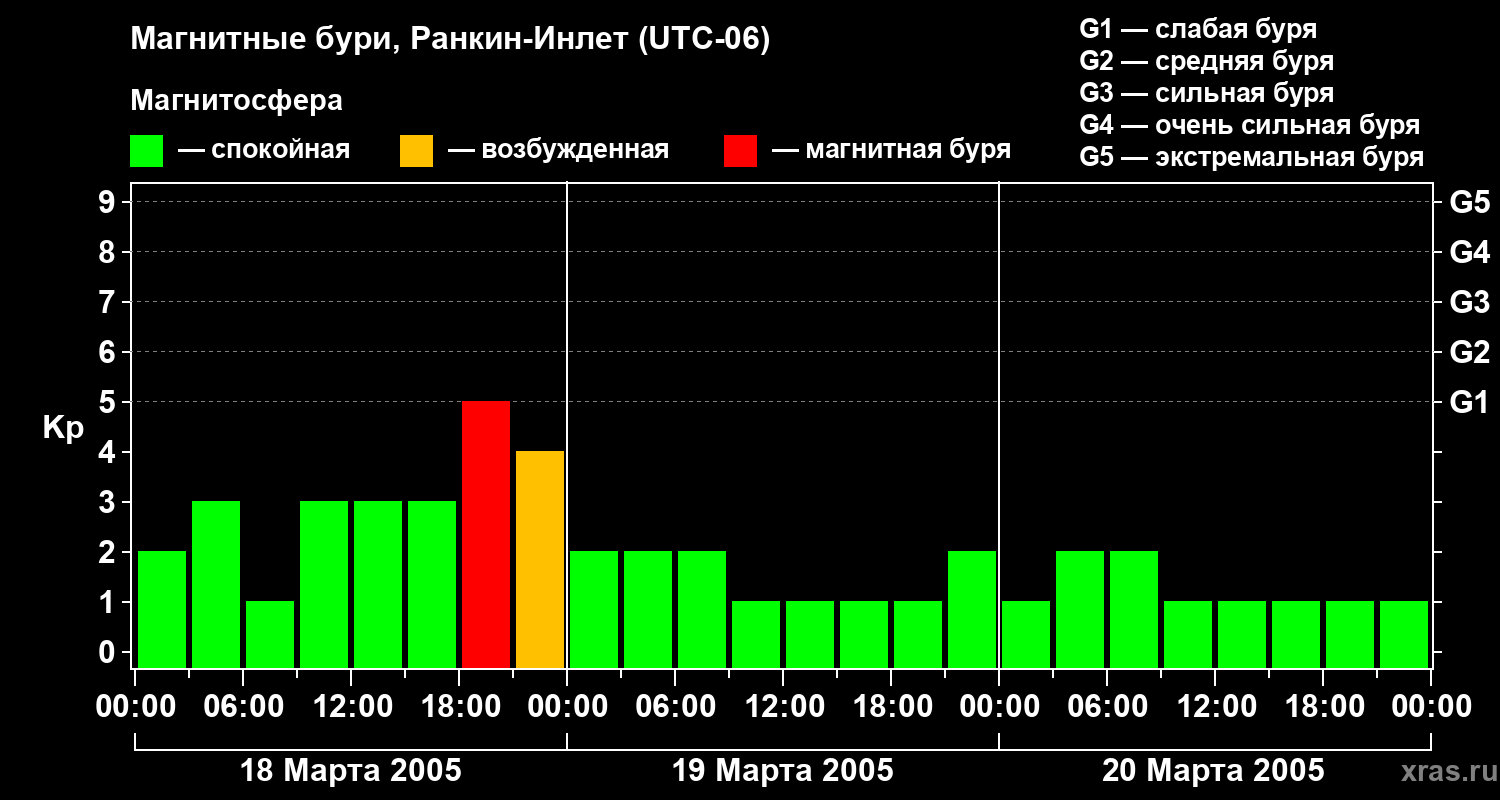Магнитные бури в Ранкин-Инлете — 20 марта 2005 года