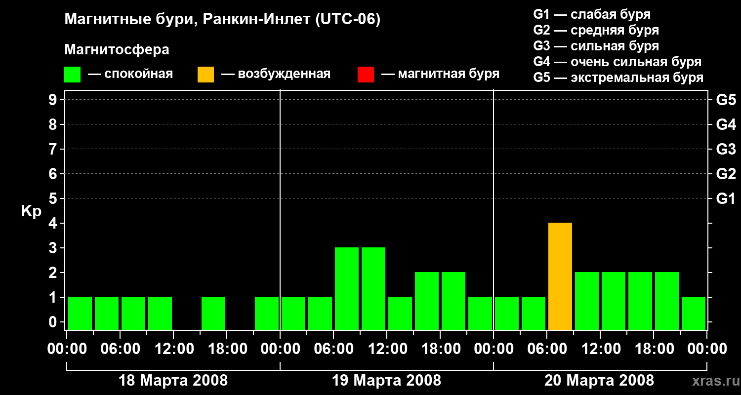 Магнитные бури в Ранкин-Инлете 20 марта 2008 года