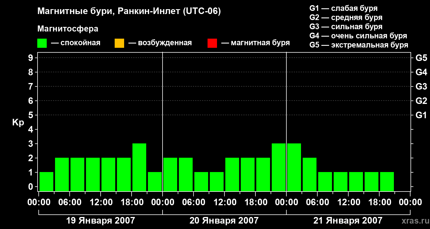Магнитные бури в Ранкин-Инлете 21 января 2007 года
