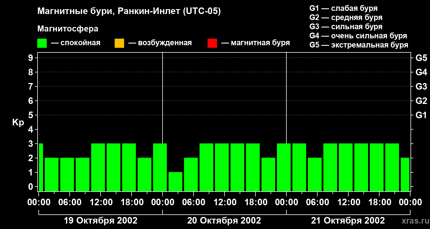 Магнитные бури в Ранкин-Инлете 21 октября 2002 года