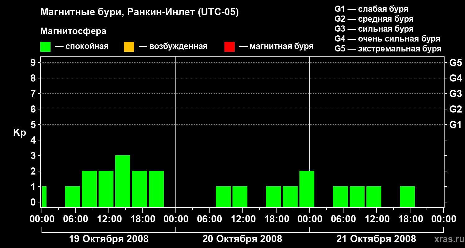 Магнитные бури в Ранкин-Инлете в октябре 2008 года