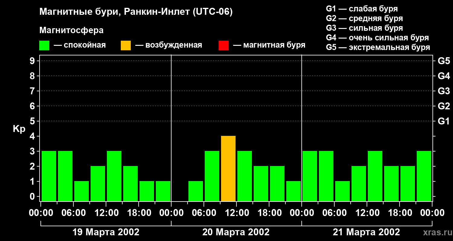 Магнитные бури в Ранкин-Инлете в марте 2002 года