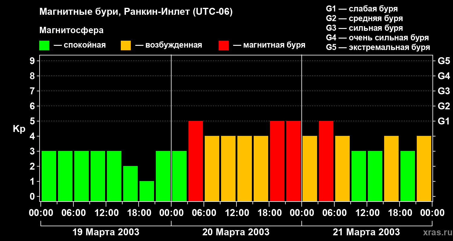 Магнитные бури в Ранкин-Инлете — 21 марта 2003 года