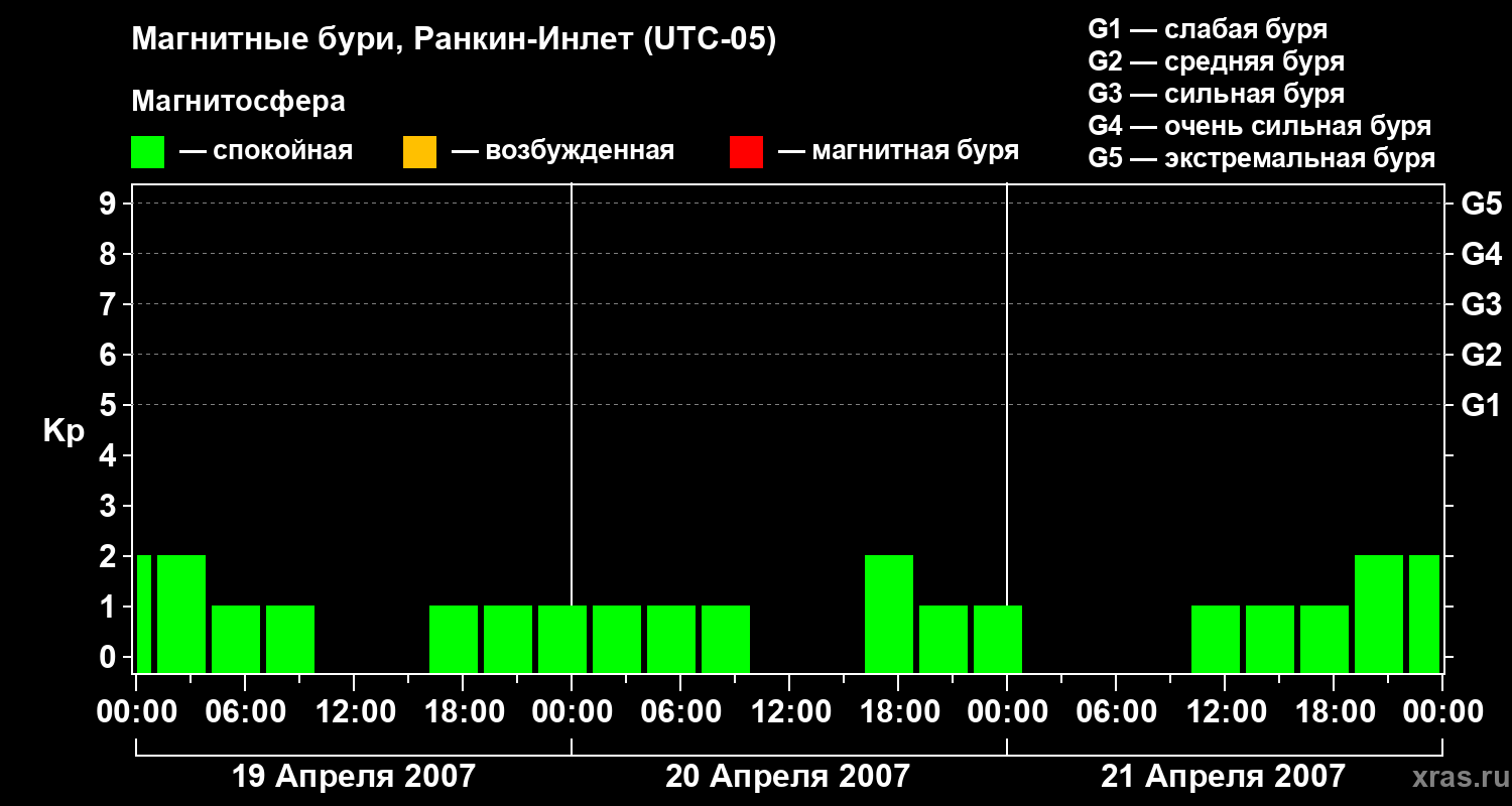 Магнитные бури в Ранкин-Инлете 21 апреля 2007 года