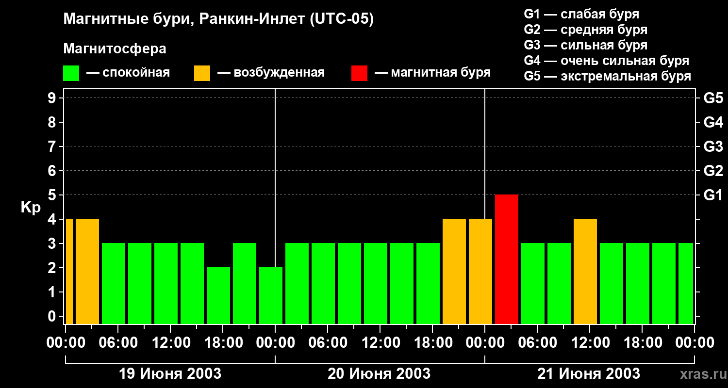 Магнитные бури в Ранкин-Инлете — 21 июня 2003 года