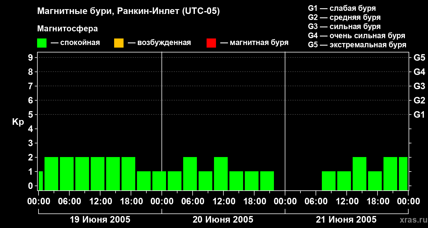 Магнитные бури в Ранкин-Инлете 21 июня 2005 года