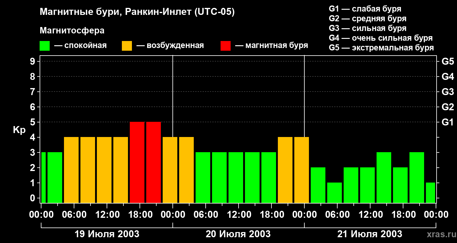 Магнитные бури в Ранкин-Инлете — 21 июля 2003 года