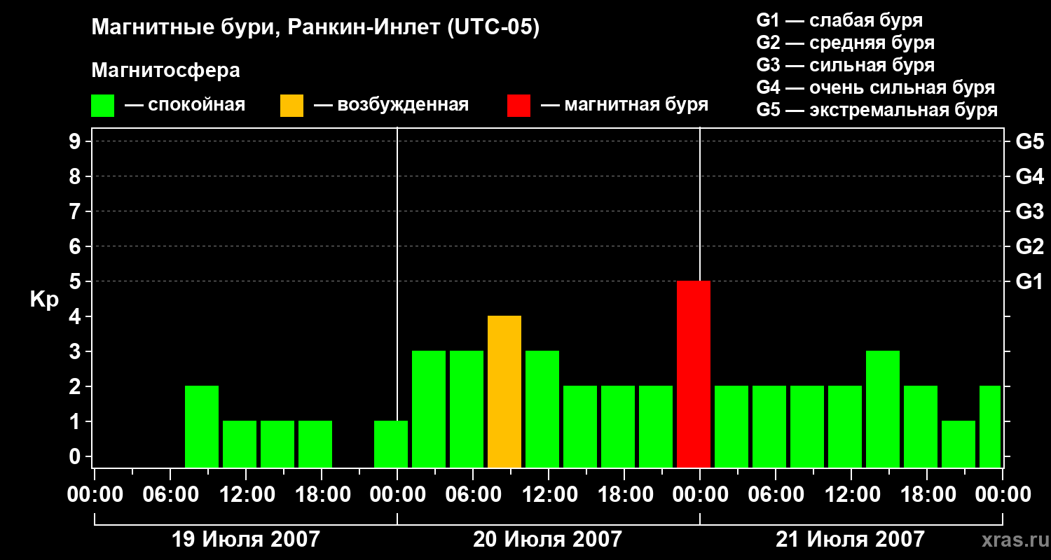 Магнитные бури в Ранкин-Инлете 21 июля 2007 года