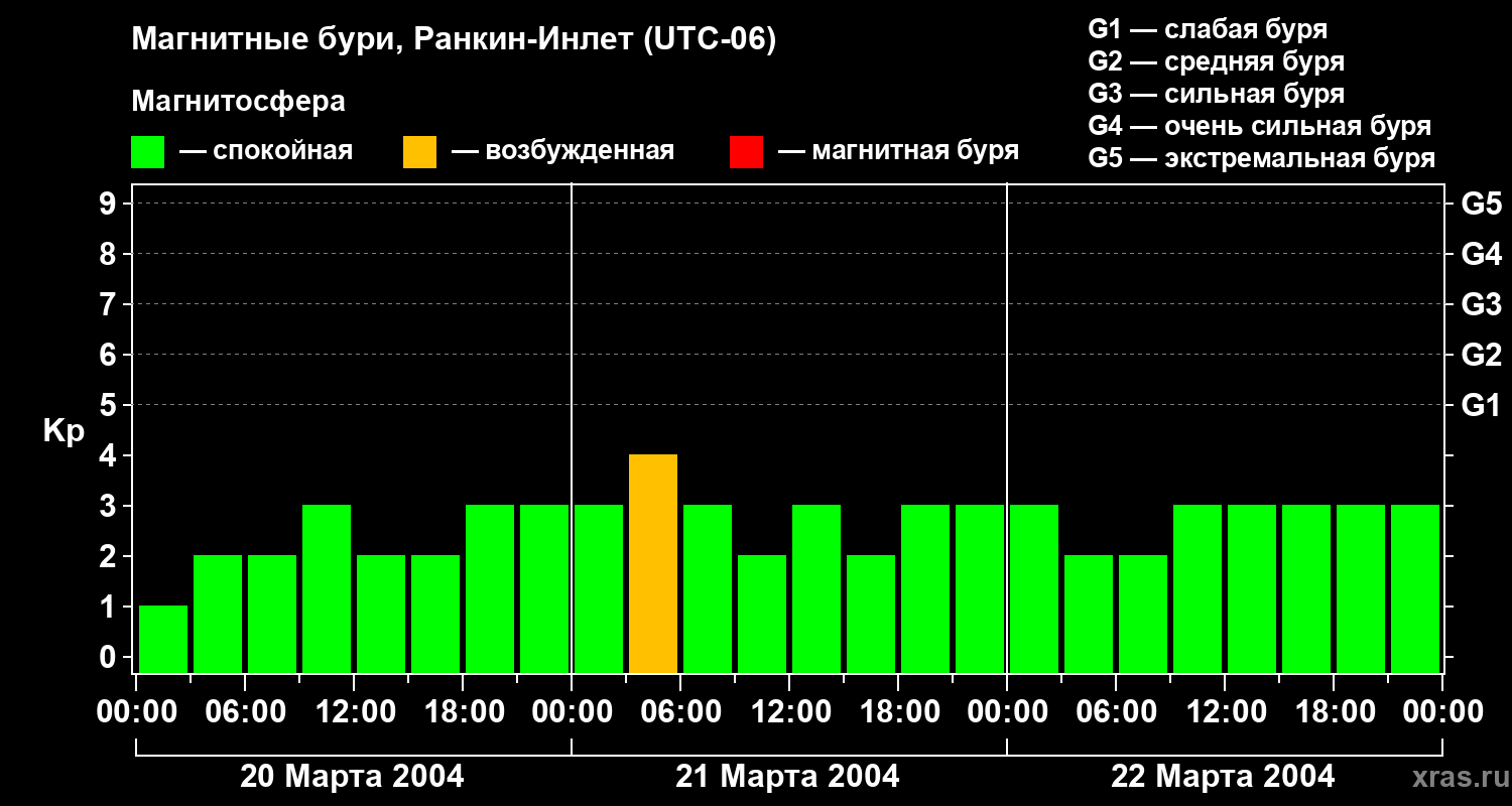 Магнитные бури в Ранкин-Инлете в марте 2004 года