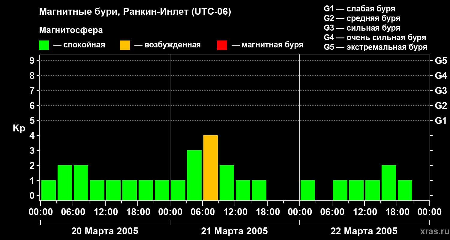 Магнитные бури в Ранкин-Инлете — 22 марта 2005 года