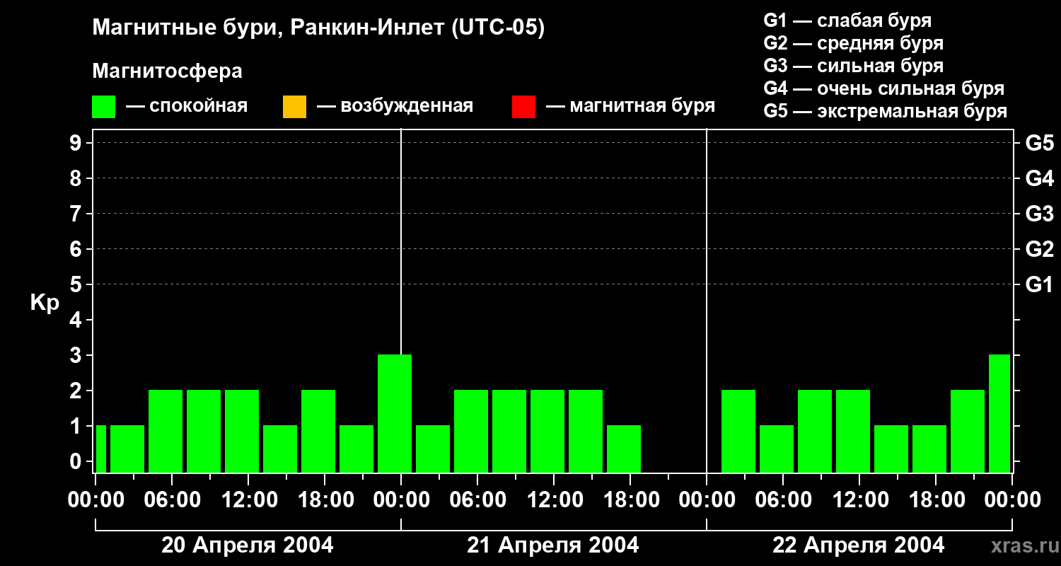 Магнитные бури в Ранкин-Инлете — 22 апреля 2004 года