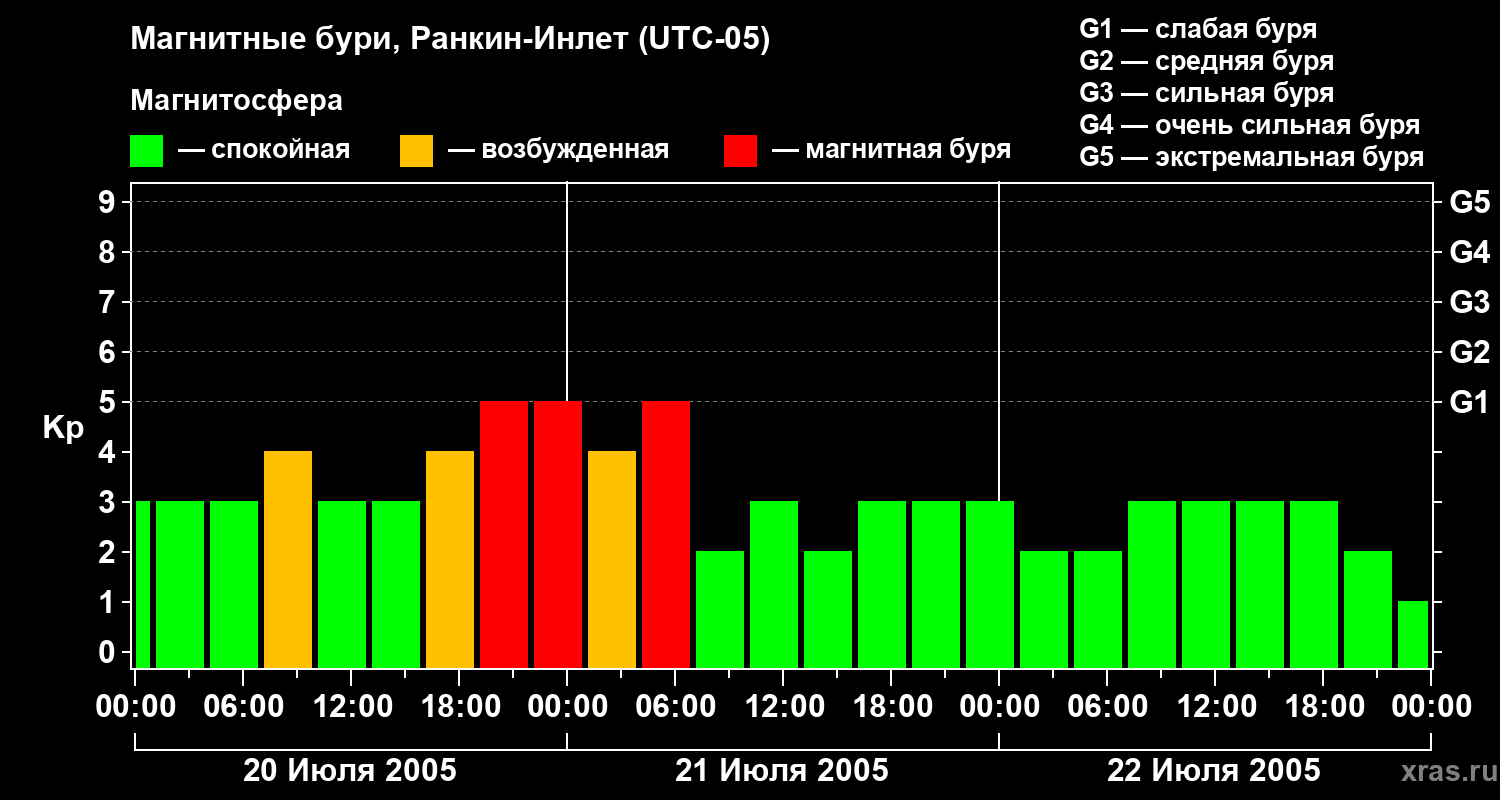 Магнитные бури в Ранкин-Инлете — 22 июля 2005 года