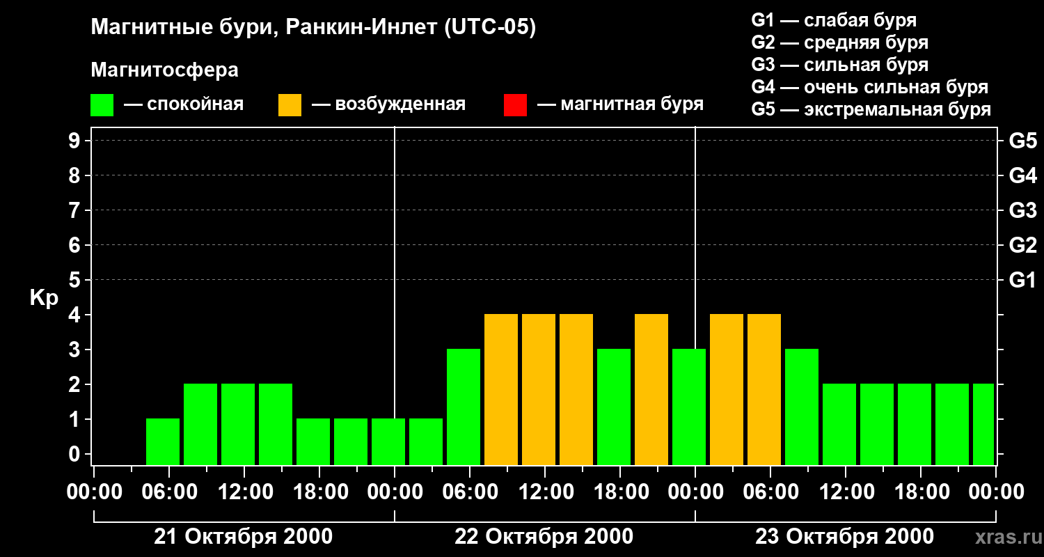 Магнитные бури в Ранкин-Инлете 23 октября 2000 года