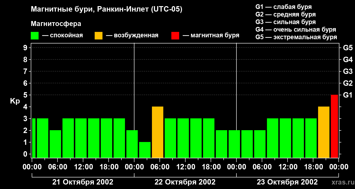Магнитные бури в Ранкин-Инлете 23 октября 2002 года