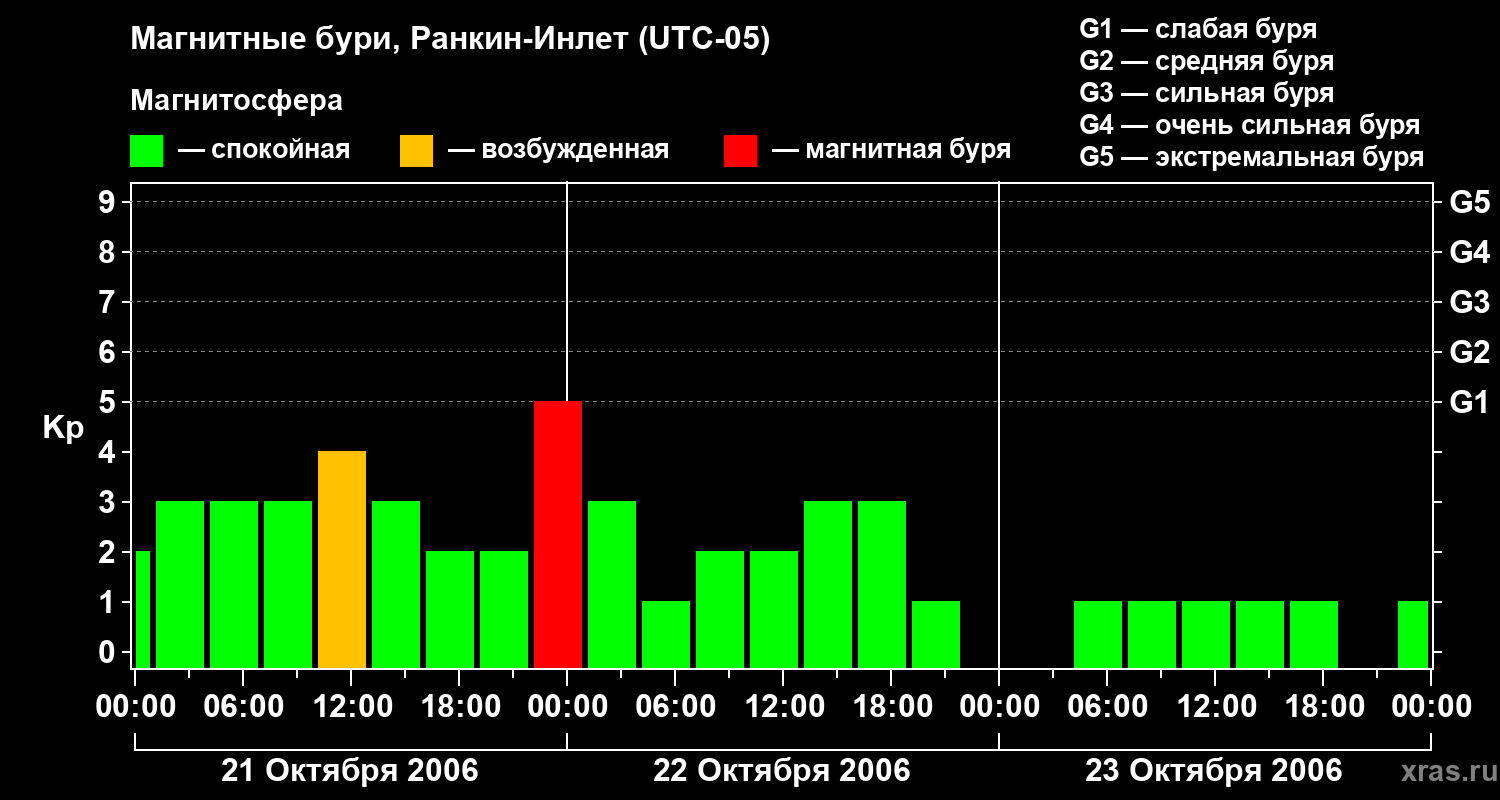 Магнитные бури в Ранкин-Инлете в октябре 2006 года