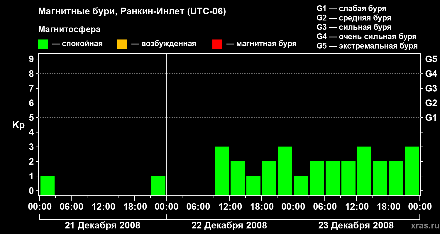 Магнитные бури в Ранкин-Инлете 23 декабря 2008 года