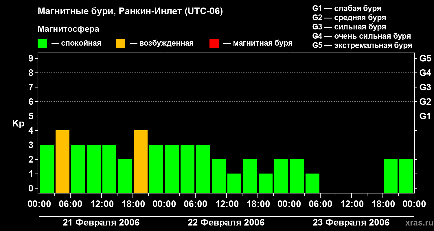 Магнитные бури в Ранкин-Инлете 23 февраля 2006 года