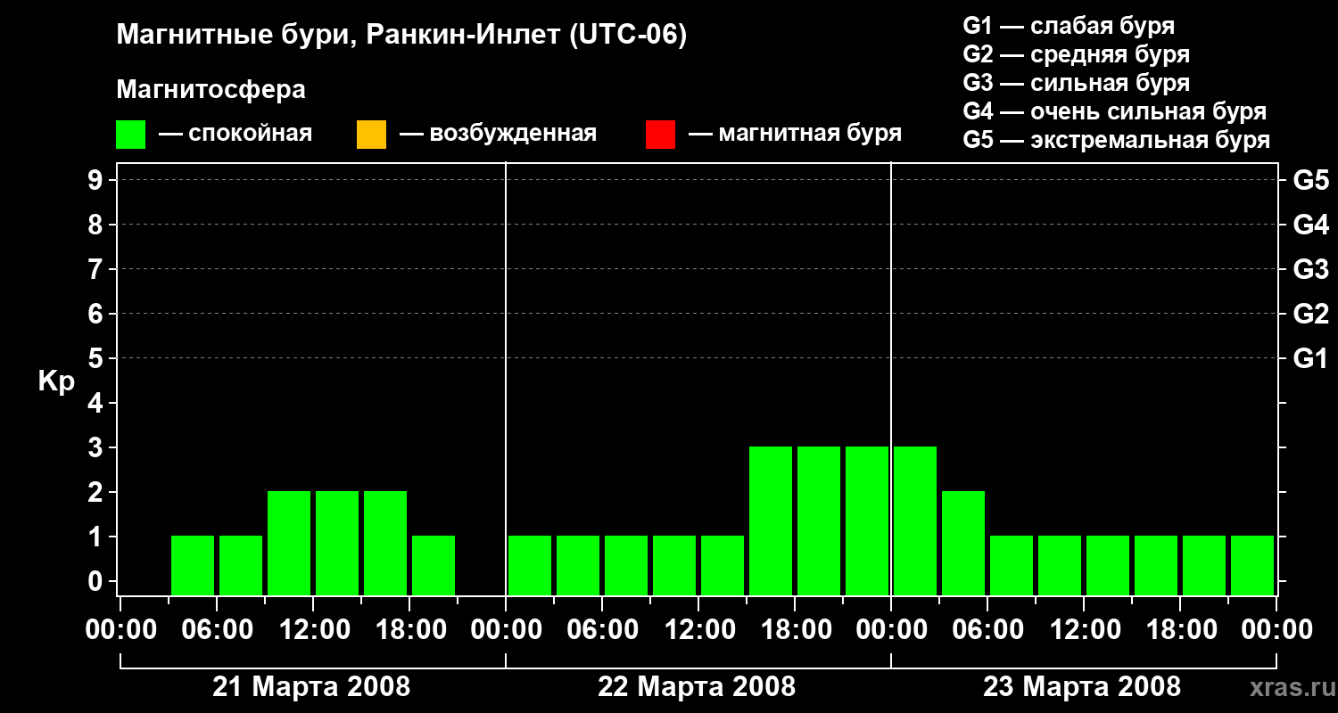 Магнитные бури в Ранкин-Инлете — 23 марта 2008 года