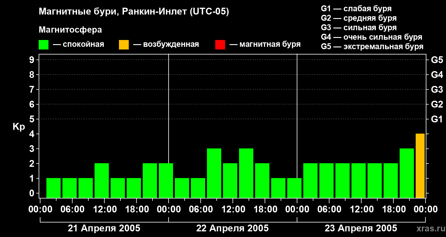 Магнитные бури в Ранкин-Инлете — 23 апреля 2005 года