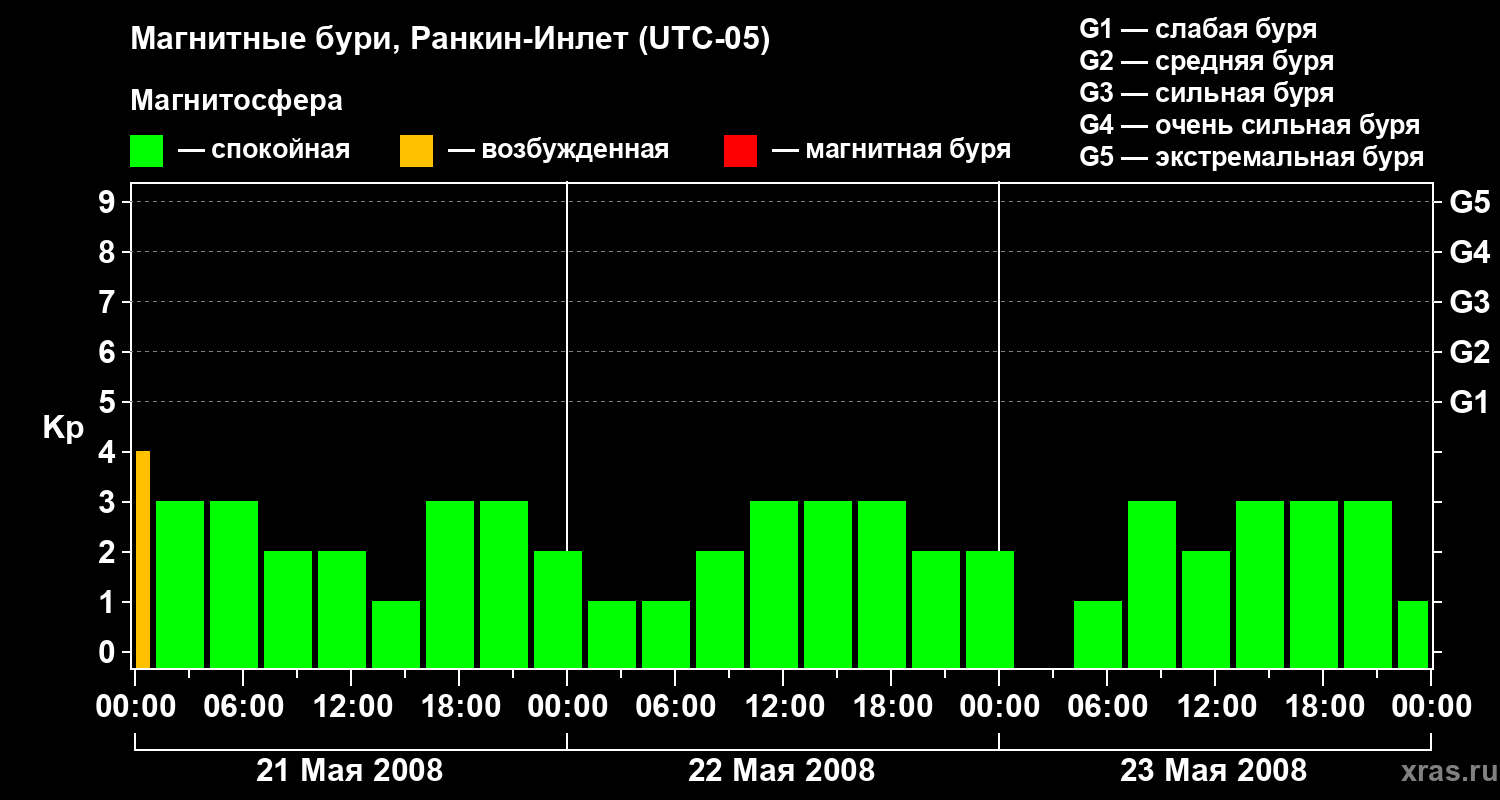 Магнитные бури в Ранкин-Инлете в мае 2008 года