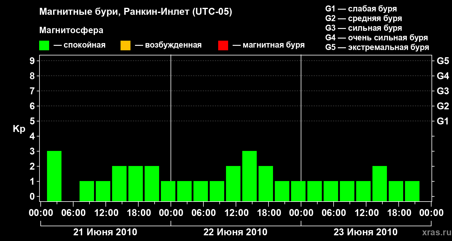 Магнитные бури в Ранкин-Инлете 23 июня 2010 года