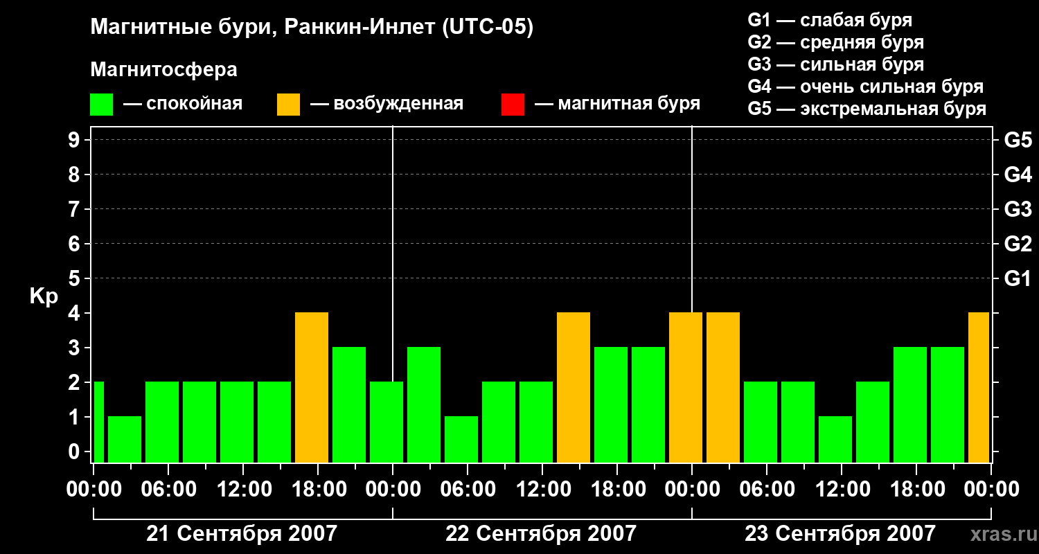 Магнитные бури в Ранкин-Инлете 23 сентября 2007 года