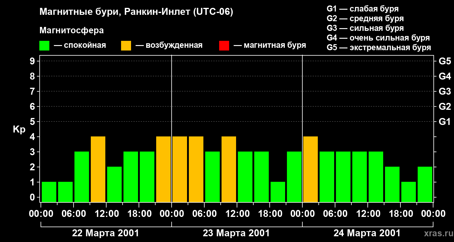 Магнитные бури в Ранкин-Инлете 24 марта 2001 года