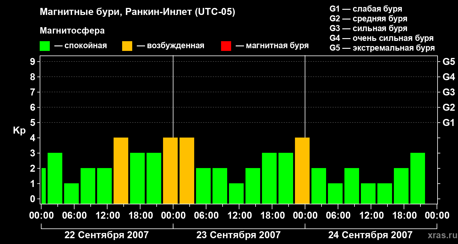 Магнитные бури в Ранкин-Инлете в сентябре 2007 года