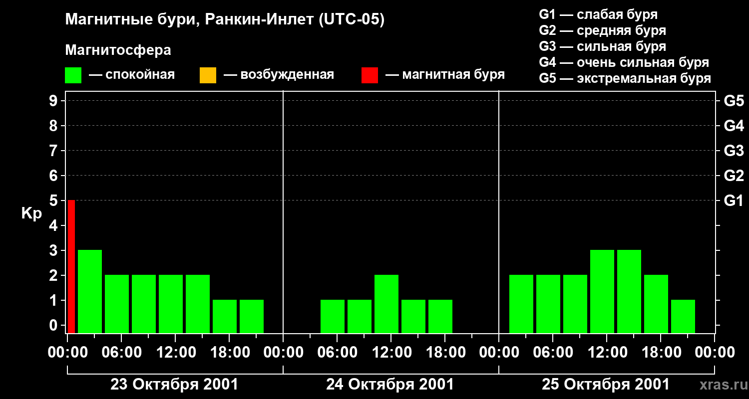 Магнитные бури в Ранкин-Инлете 25 октября 2001 года