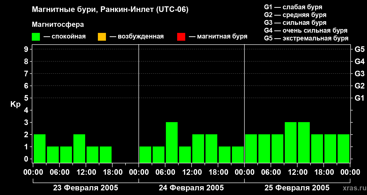 Магнитные бури в Ранкин-Инлете 25 февраля 2005 года