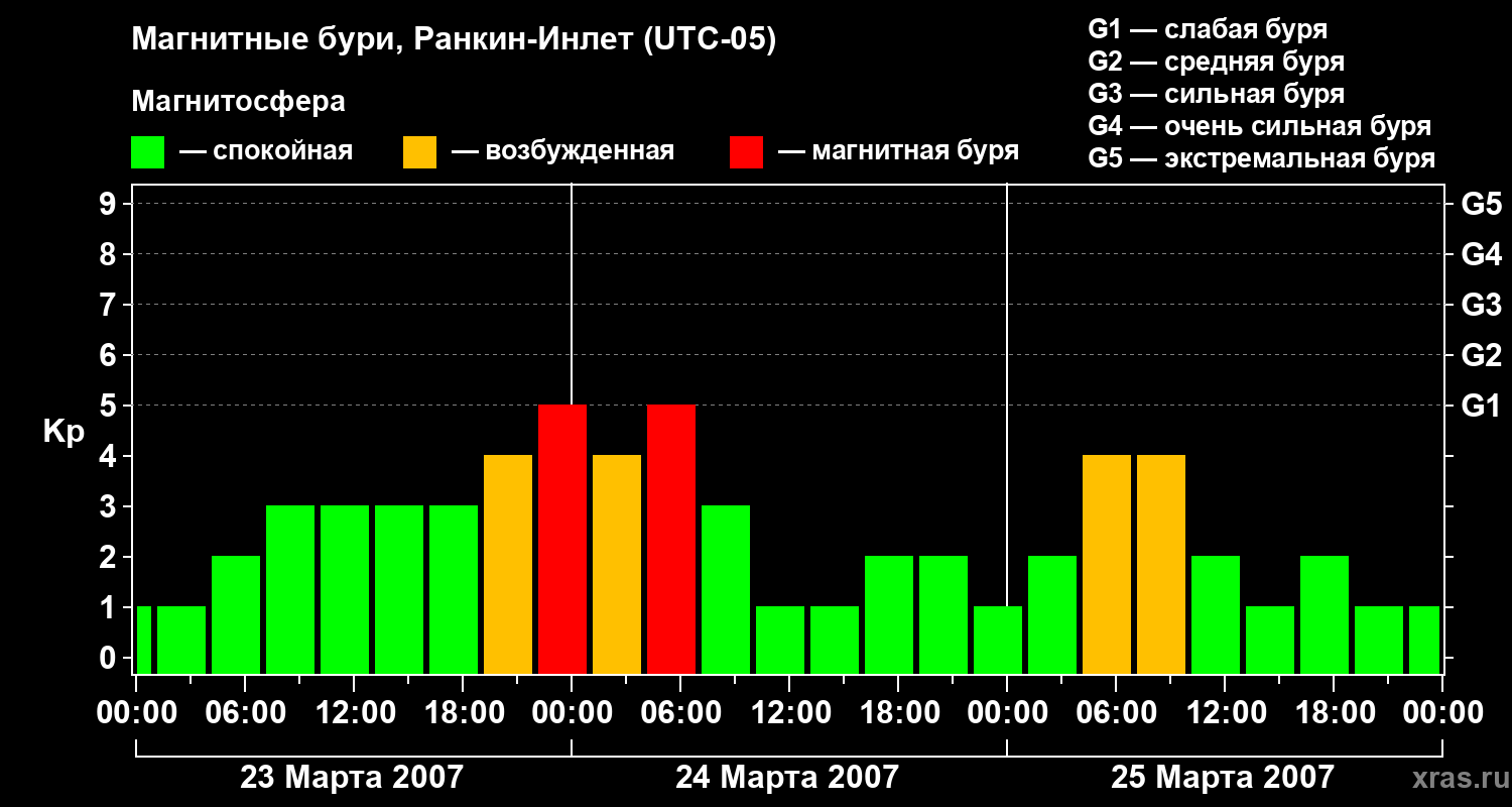 Магнитные бури в Ранкин-Инлете 25 марта 2007 года