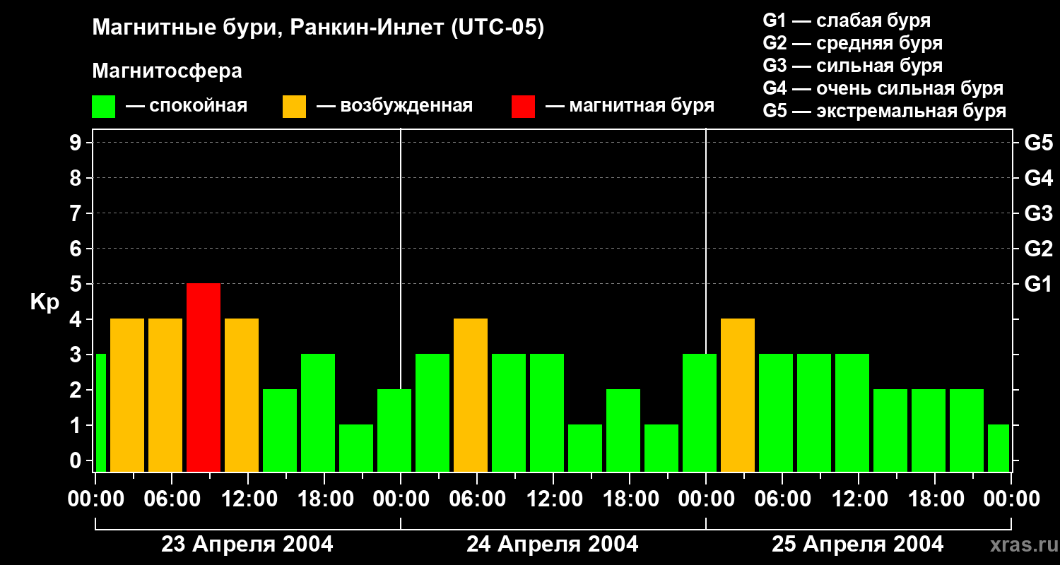 Магнитные бури в Ранкин-Инлете 25 апреля 2004 года