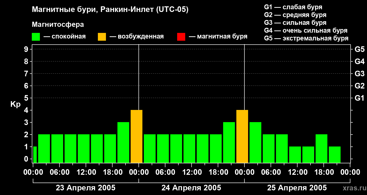 Магнитные бури в Ранкин-Инлете — 25 апреля 2005 года