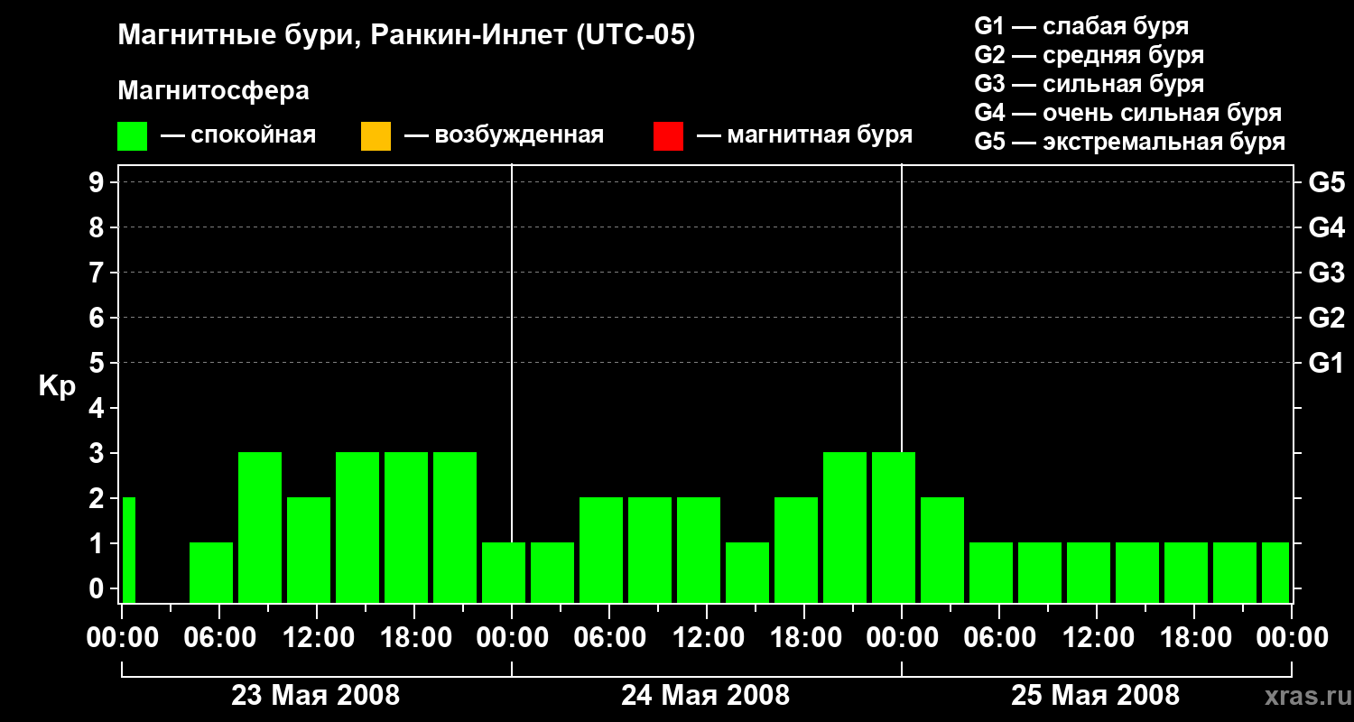 Магнитные бури в Ранкин-Инлете 25 мая 2008 года