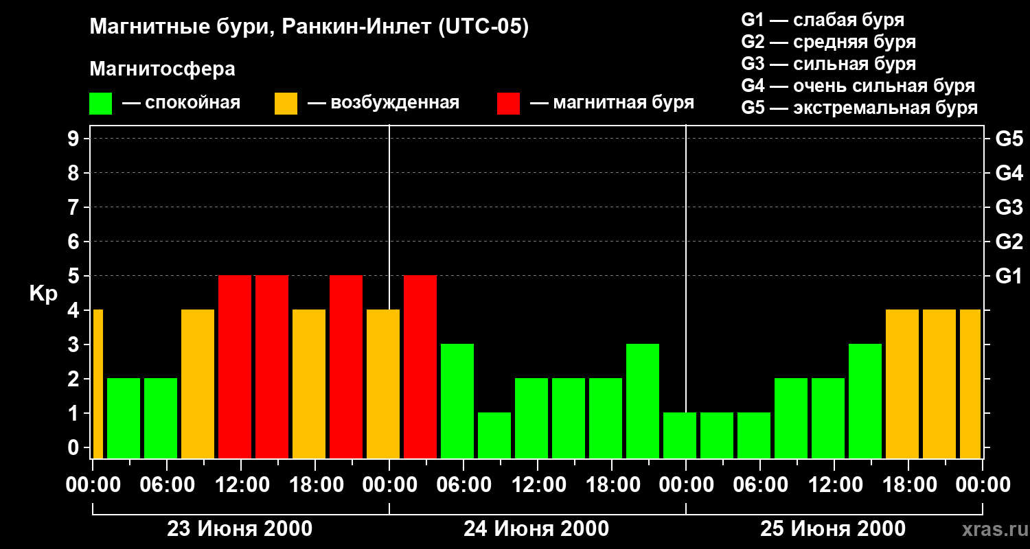 Магнитные бури в Ранкин-Инлете 25 июня 2000 года