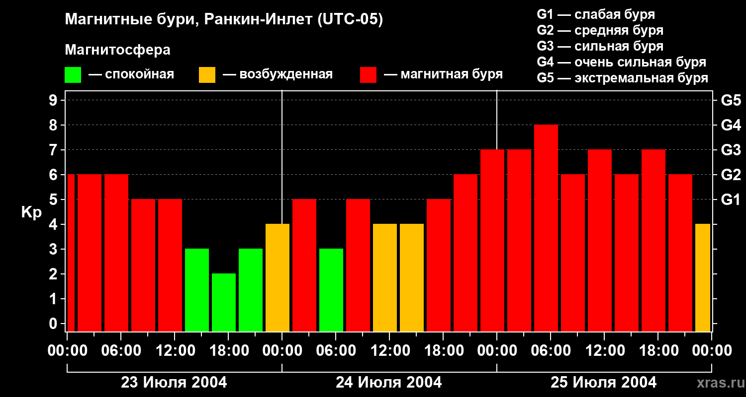 Магнитные бури в Ранкин-Инлете — 25 июля 2004 года