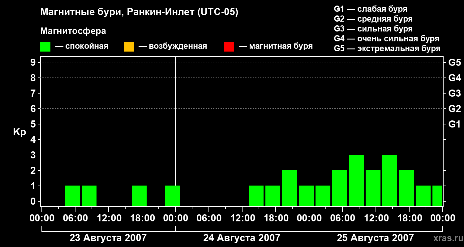 Магнитные бури в Ранкин-Инлете 25 августа 2007 года